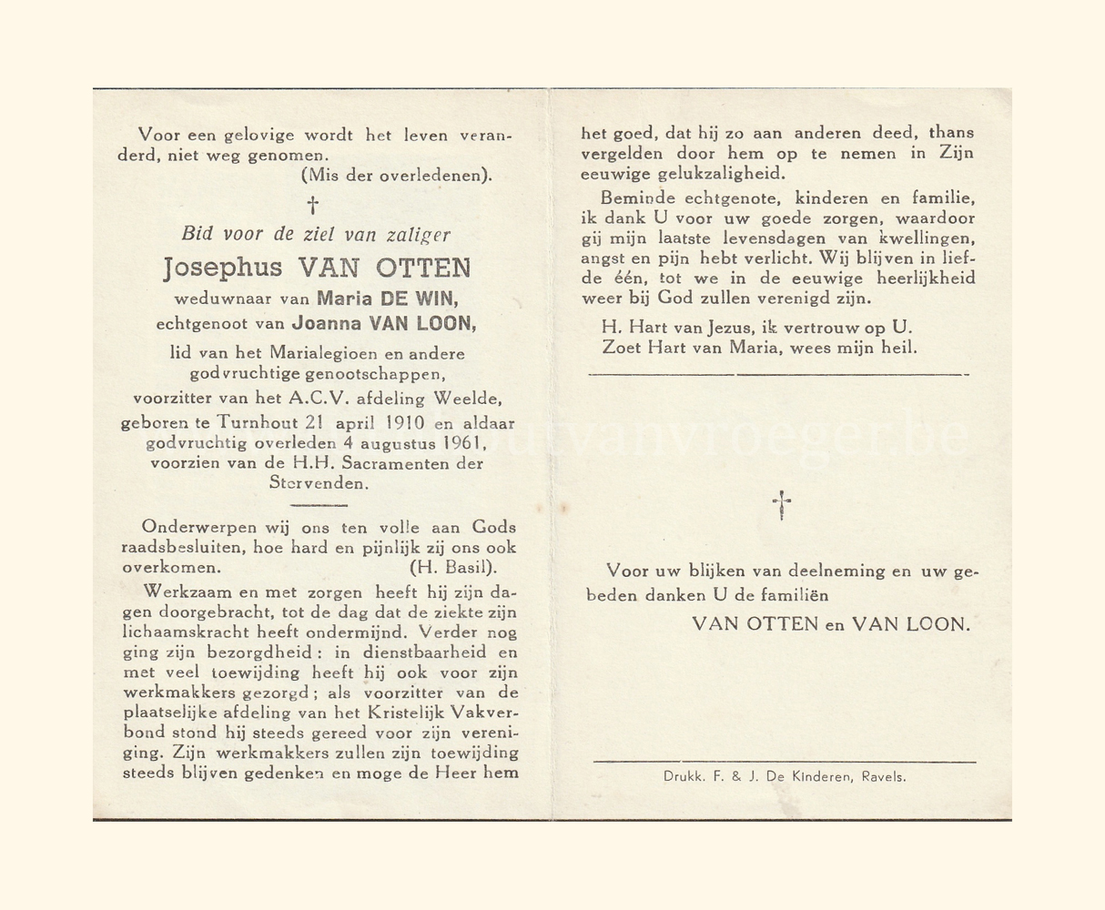 Wij willen met deze website niemand kwetsen of beledigen, het is enkel de bedoeling om genealogische informatie weer te geven.  Daarenboven hechten we veel belang aan ieders privacy.  Heeft u bezwaar tegen de vermelding van een bidprentje van één van uw familieleden die de afgelopen 50 jaar overleden zijn, stuur dan een mailtje naar info@smartsitesolutions.be.