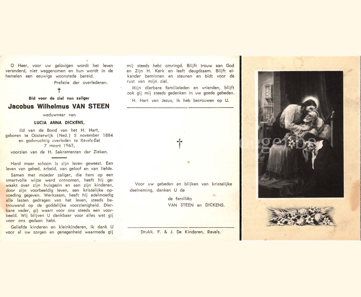 Wij willen met deze website niemand kwetsen of beledigen, het is enkel de bedoeling om genealogische informatie weer te geven.  Daarenboven hechten we veel belang aan ieders privacy.  Heeft u bezwaar tegen de vermelding van een bidprentje van één van uw familieleden die de afgelopen 50 jaar overleden zijn, stuur dan een mailtje naar info@smartsitesolutions.be.