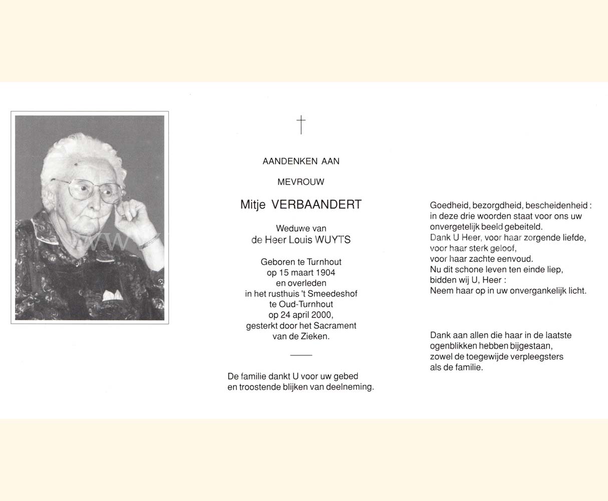 Wij willen met deze website niemand kwetsen of beledigen, het is enkel de bedoeling om genealogische informatie weer te geven.  Daarenboven hechten we veel belang aan ieders privacy.  Heeft u bezwaar tegen de vermelding van een bidprentje van één van uw familieleden die de afgelopen 50 jaar overleden zijn, stuur dan een mailtje naar info@smartsitesolutions.be.