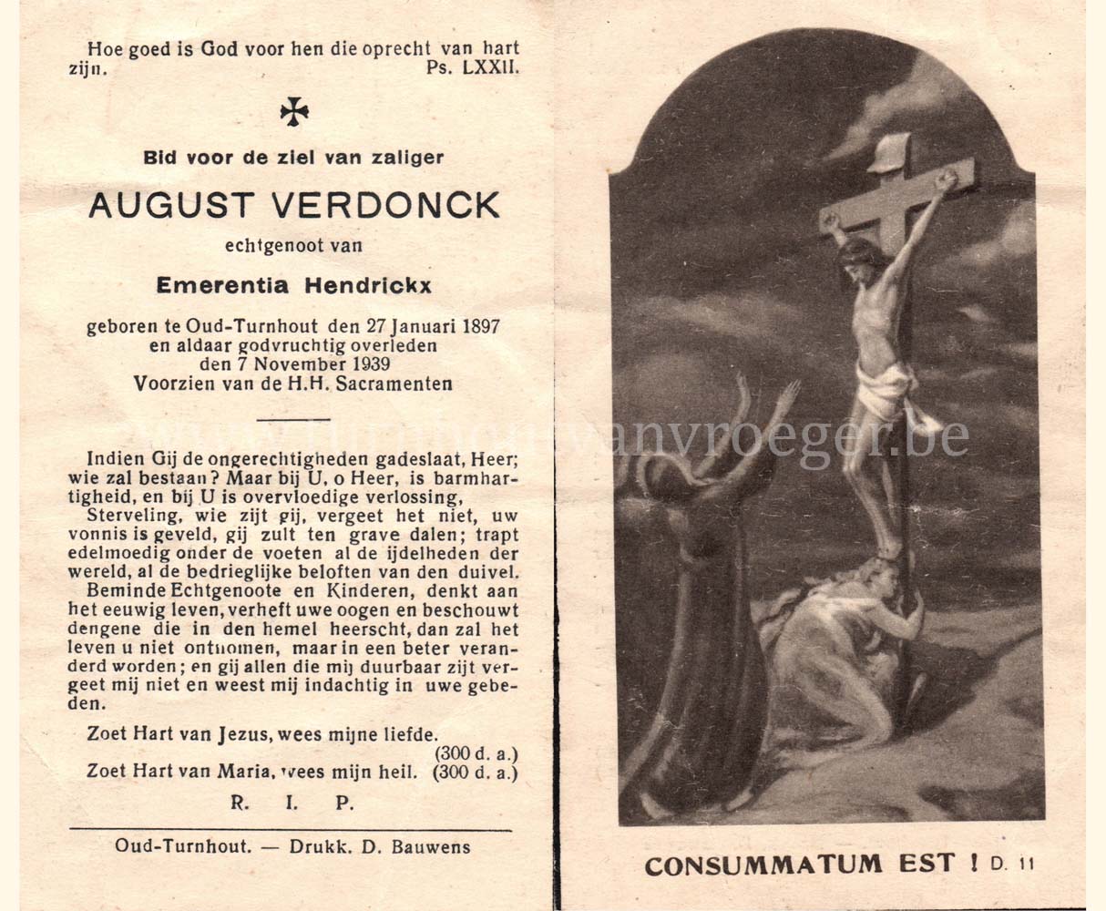 Maria Verdonck was de negende uit een rij van tien kinderen van een koppel zoals er in die tijd in Turnhout veel waren. Maria’s vader Adrianus (Poppel, 1806 – Turnhout, 1897) was wever en haar moeder Joanna Maria Van Doren (Turnhout, 1809 – Turnhout, 1889) was kantwerkster. Alle kinderen uit het gezin Verdonck-Van Doren werden fabriekwerker, kantwerkster of handwerkster. Een doodnormaal gezin dus.