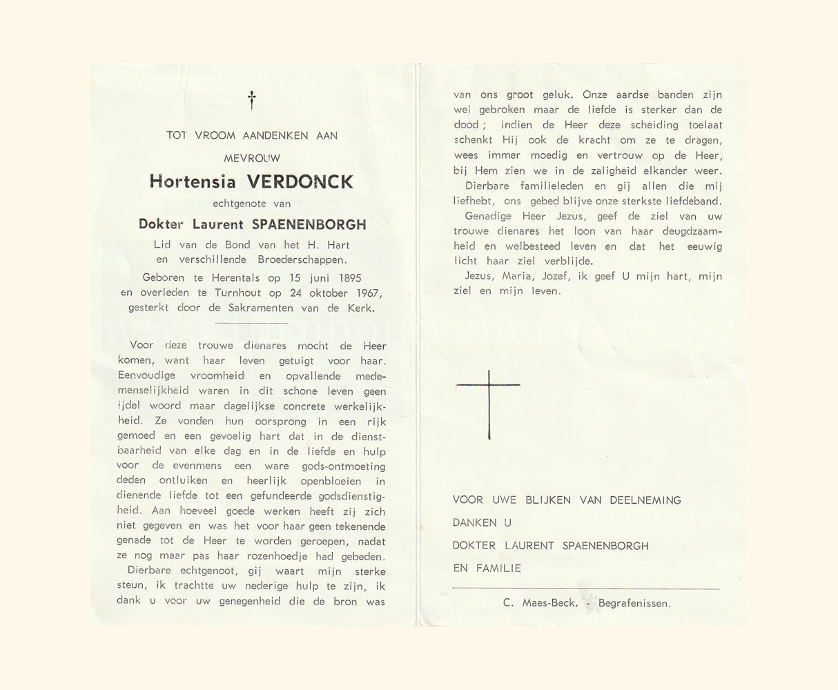 Wij willen met deze website niemand kwetsen of beledigen, het is enkel de bedoeling om genealogische informatie weer te geven. Daarenboven hechten we veel belang aan ieders privacy. Heeft u bezwaar tegen de vermelding van een bidprentje van één van uw familieleden die de afgelopen 50 jaar overleden zijn, stuur dan een mailtje naar info@smartsitesolutions.be.