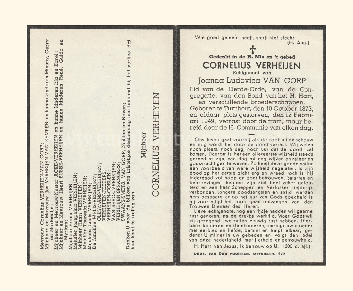 Wij willen met deze website niemand kwetsen of beledigen, het is enkel de bedoeling om genealogische informatie weer te geven.  Daarenboven hechten we veel belang aan ieders privacy.  Heeft u bezwaar tegen de vermelding van een bidprentje van één van uw familieleden die de afgelopen 50 jaar overleden zijn, stuur dan een mailtje naar info@smartsitesolutions.be.