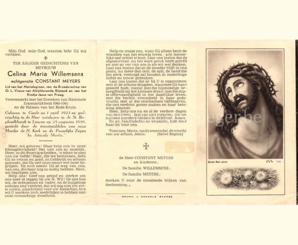 Wij willen met deze website niemand kwetsen of beledigen, het is enkel de bedoeling om genealogische informatie weer te geven.  Daarenboven hechten we veel belang aan ieders privacy.  Heeft u bezwaar tegen de vermelding van een bidprentje van één van uw familieleden die de afgelopen 50 jaar overleden zijn, stuur dan een mailtje naar info@smartsitesolutions.be.