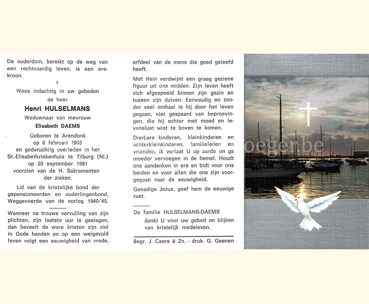 Vermoord door de Duitsers bij de inval in Oud-Turnhout bij het begin van Wereldoorlog II.