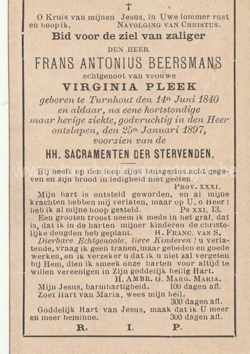 De kleine boekbinder, die eerder boeken aan huis bestelde die hij in de fabriek had gebonden, stond aan het hoofd van een uitstekend handelshuis wanneer de dood onverbiddelijk een einde maakte aan zijn zaken. Beersmans stierf op 25 januari 1897. Zijn weduwe en dochter zetten de zaken tot 1902 verder.
