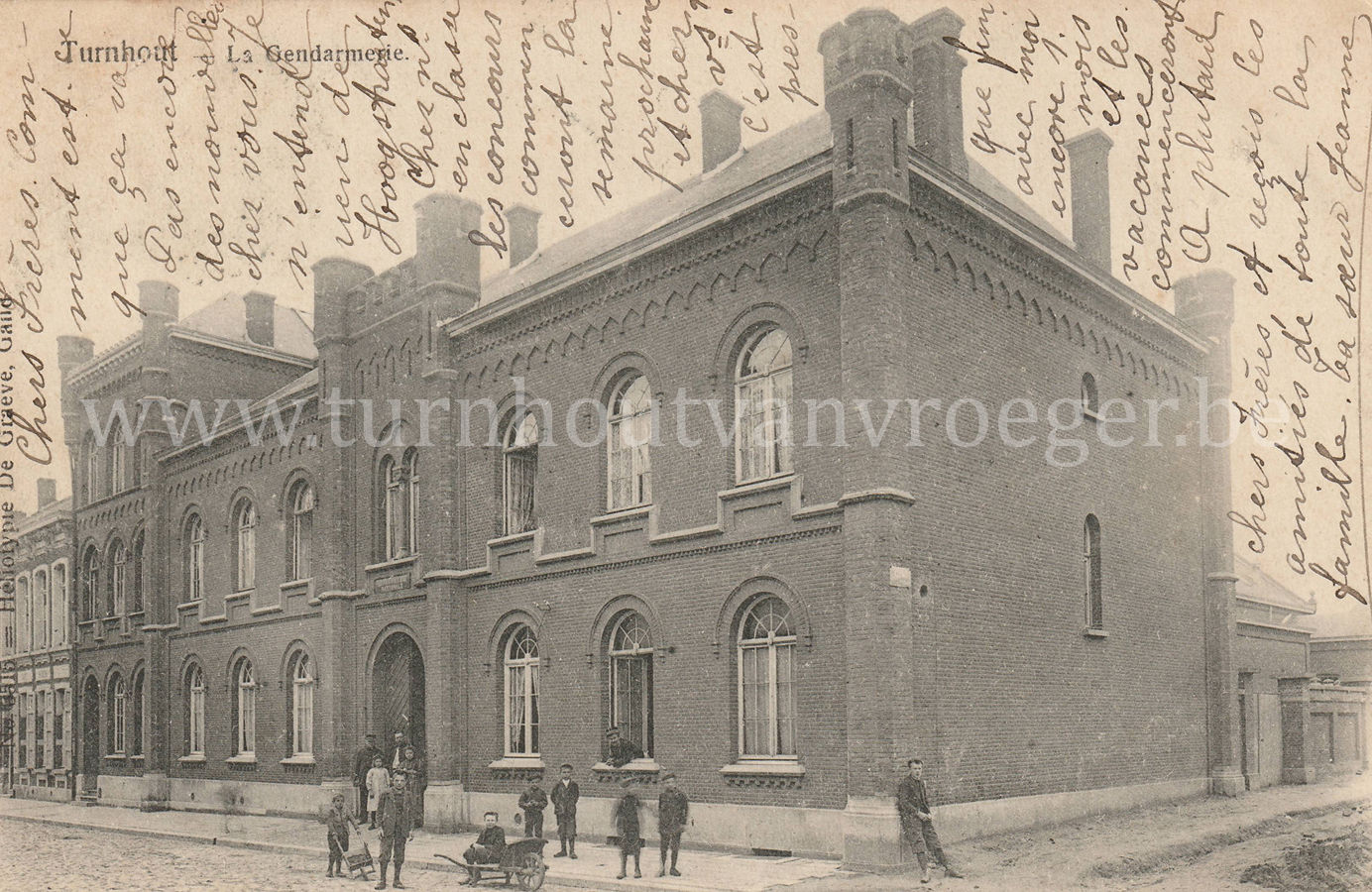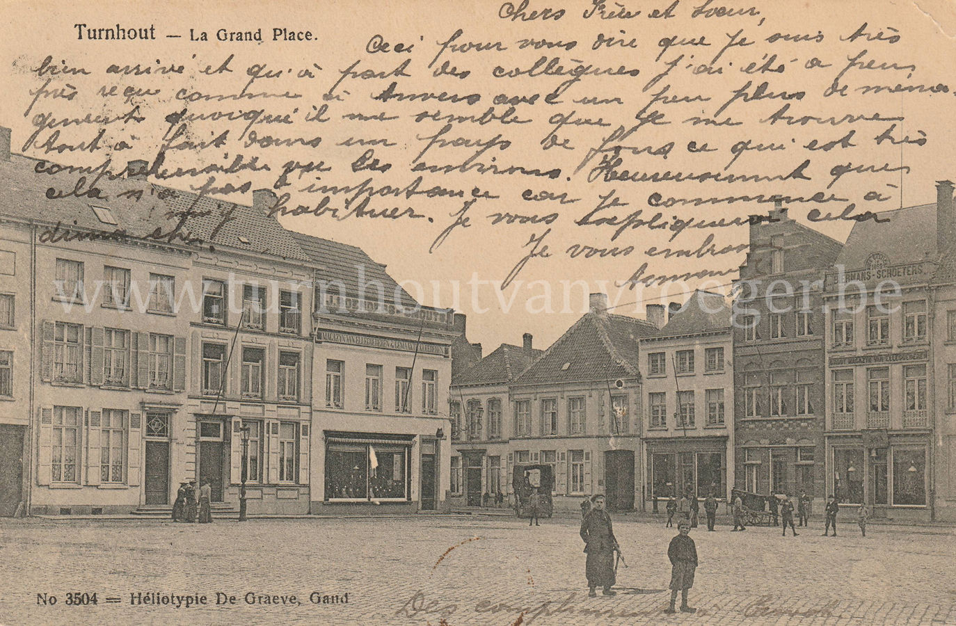 De kaart werd verstuurd door Cesar Daems (° 11/03/1891), Korte Gasthuisstraat 77 in Turnhout. Dit was de zoon van beeldhouwer Napoleon Daems. Zijn kasteeltje bestaat nog steeds, recht tegenover de huidige Dierckxstraat in de Korte Gasthuisstraat. Zoon Cesar werd eveneens beeldhouwer. Toen deze kaart verstuurd werd, was hij uiteraard nog een kind want de kaart dateert van voor 1905 (geen splitsing op de rugzijde)